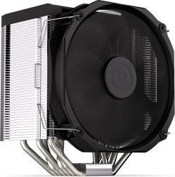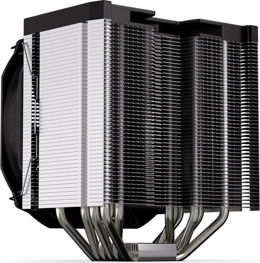 Dankzij de luchtstroomoptimalisatie voor éénrichtingsdoorstroming behaalt de koeler uitstekende temperaturen bij een laag geluidsniveau. Speciaal gevormde bladen met een golvende rand verminderen storende tonale geluiden en de semi-passieve modus maakt een volledig stille werking bij lage belasting mogelijk.