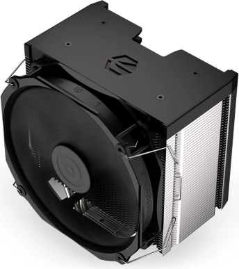 Dichte lamellen en een asymmetrische opbouw met zes heatpipes zorgen voor efficiënte warmteafvoer en betere compatibiliteit met hoge RAM-modules.