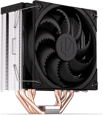 De Endorfy Fera 5 is ontworpen voor efficiënte koeling in compacte systemen. De asymmetrische heatsink met dichte lamellen en vier koperen heatpipes voert de warmte snel af van de CPU, terwijl de optimalisatie voor eendirectionele luchtstroom de efficiëntie in praktijksituaties verhoogt.