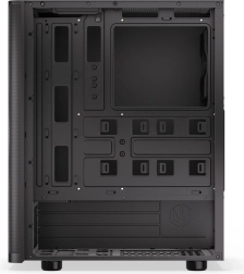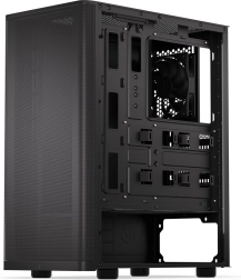 Je installeert moeiteloos een ATX‑moederbord, opslag tot 3× 2,5" (of 1× 3,5" + 2× 2,5") en krachtige koeling: vooraan tot een 360 mm radiator, bovenaan 240 mm radiator. Voor luchtkoeling zijn er tot 7 posities voor ventilatoren – één hoogwaardige Stratus 120 PWM is inbegrepen.