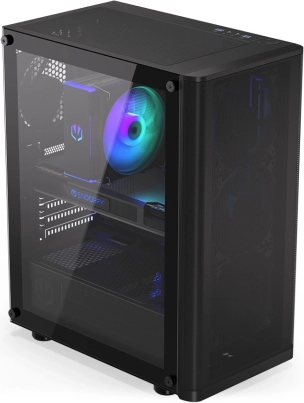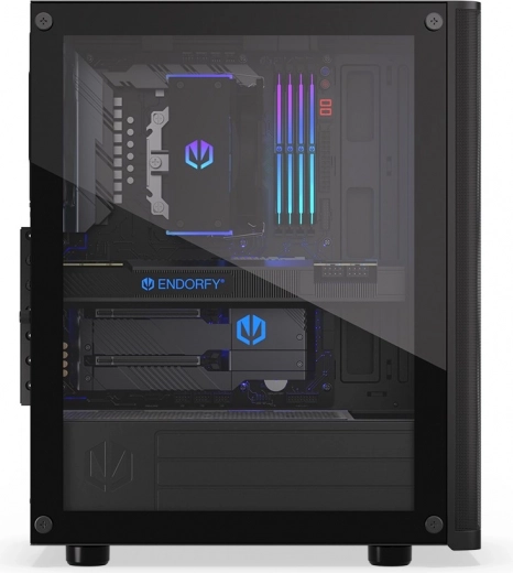 De compacte en ruime computerbehuizing ENDORFY Ventum 200 Air met een zijpaneel van gehard glas biedt uitstekende luchtstroom, effectieve stoffiltratie en ondersteuning voor koeling met tot 7 ventilatoren. Er past een volwaardige ATX-moederbord in, een radiator tot 360 mm aan de voorzijde en 240 mm aan de bovenkant, en een set van vier stille Stratus 120 PWM-ventilatoren is inbegrepen.