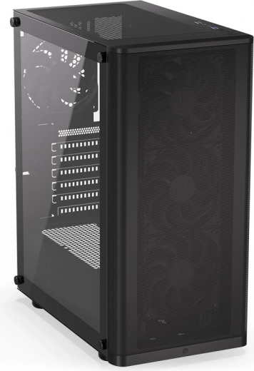 Het zijpaneel van gehard glas zet je componenten elegant in de kijker en het stevige frame biedt ruimte voor krachtige systemen. Je installeert moeiteloos een ATX-moederbord, tot 3× 2,5" opslag (of 1× 3,5" + 2× 2,5") en grote lucht- of waterkoelers met radiatoren van 360 mm (voorzijde) en 240 mm (bovenzijde).