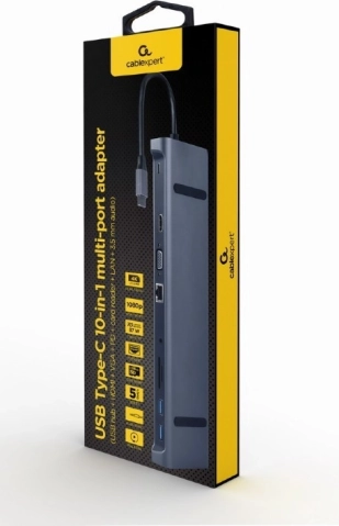 10-in-1 adapter USB‑C is een uitstekende oplossing om de poorten van uw apparaat uit te breiden. Bevat HDMI, VGA, USB, LAN en meer noodzakelijke functies in één compact apparaat.