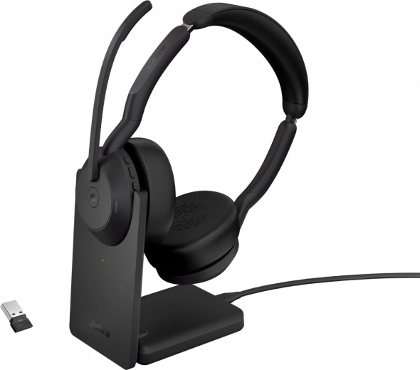 De Jabra Evolve2 55 hoofdtelefoon is ontworpen voor moderne hybride werkstijlen. Deze headset biedt professioneel geluid voor gesprekken en muziek luisteren en is uitgerust met actieve ruisonderdrukking (ANC), zodat u zich volledig op belangrijke taken kunt concentreren. De ergonomisch gewatteerde oorkussens en Jabra Air Comfort technologie bieden het beste comfort.