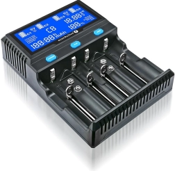 Universele lader met uitzonderlijk brede compatibiliteit voor Li‑ion, Li‑HV, LiFePO4 en Ni‑MH cellen. Ondersteunt formaten AA, AAA, C, D, 9V en Li‑ion‑cellen van 10440 tot 33600, inclusief 20700/21700 met bescherming. Dankzij de maximale sledelengte van 76 mm kunt u ook langere accu’s comfortabel opladen.