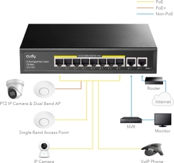 Cudy 10-Poorts Gigabit PoE+ Schakelaar is ontworpen voor efficiënte beheer en distributie van dataverkeer in het netwerk. Het biedt: