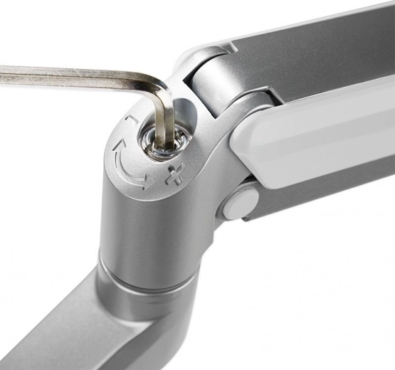 Met een inbussleutel stel je de arm eenvoudig af op het gewicht van de monitor voor optimale stabiliteit en een soepele beweging.