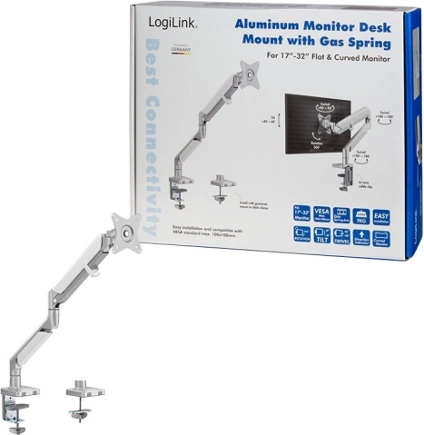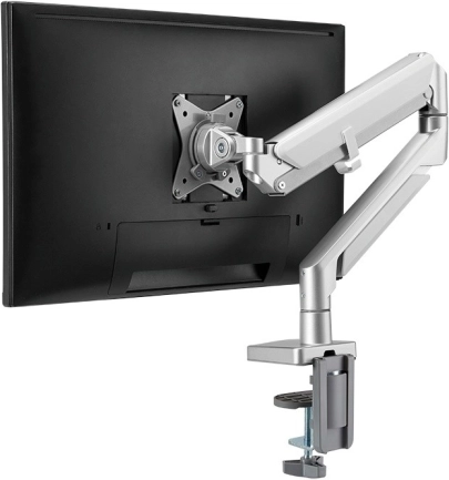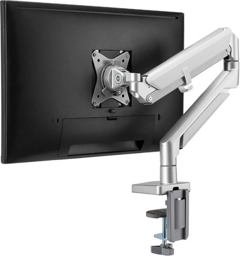 Verander je bureau in een overzichtelijke en ergonomische werkplek. Deze aluminium arm met gasveer maakt moeiteloze, precieze instelling van hoogte, afstand en kijkhoek mogelijk. Ondersteunt platte en gebogen monitoren en bespaart ruimte dankzij montage aan de rand van het bureau.