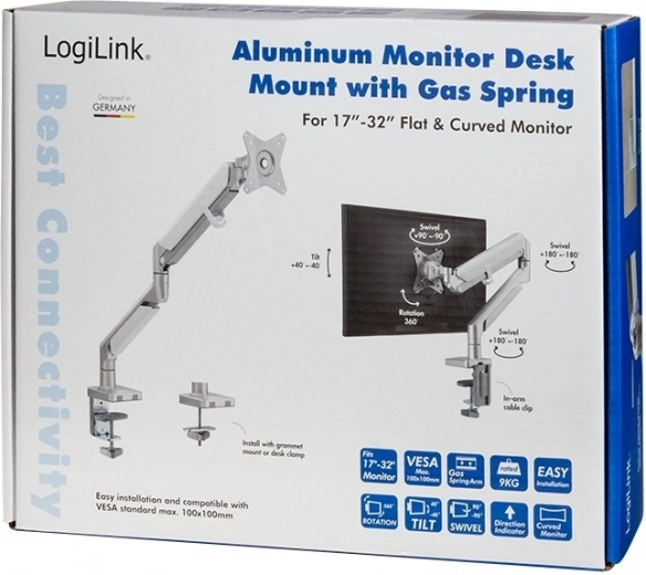 De stevige constructie met een draagvermogen tot 9 kg houdt je scherm betrouwbaar op zijn plek, terwijl draaien, kantelen en rotatie naar portretstand je helpen de ideale positie te vinden voor werk, gamen en video’s. De installatie gaat snel met de stevige C-klem en VESA-standaard.