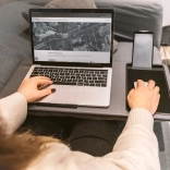 Het robuuste werkblad met een stoprand aan de onderzijde houdt je laptop stevig op zijn plaats, ook wanneer het geheel licht gekanteld is. Ideaal om in bed of op de bank te werken.