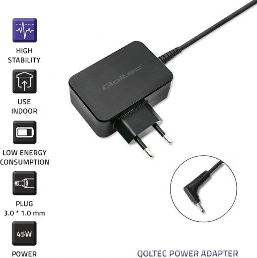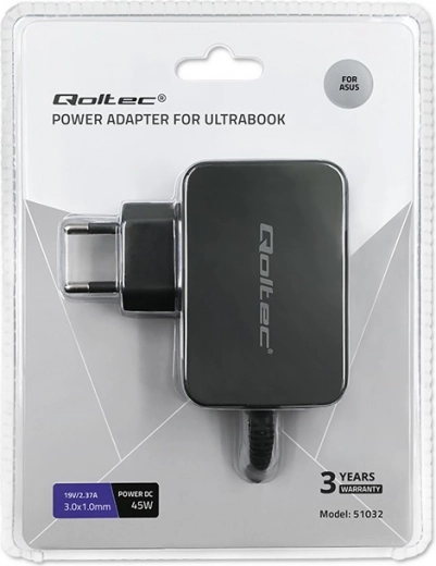 Qoltec 45W oplader is de perfecte keus voor uw Asus laptop. Deze oplader is niet alleen het hart van uw apparaat, maar ook een sleutelcomponent voor zijn lange levensduur. Het biedt betrouwbare en veilige prestaties dankzij speciale beschermingen: