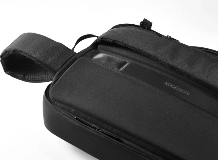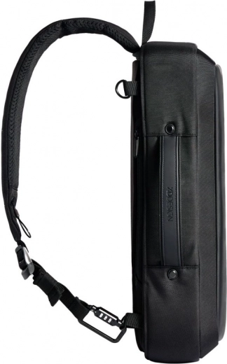 Hij is uitgerust met verborgen ritsen en vakken die beschermen tegen diefstal, en een duurzame snijbestendige en waterdichte constructie. Het geïntegreerde zinkslootje maakt bevestiging aan elk vast object mogelijk en de stalen kabel in de schouderband zorgt voor extra veiligheid.