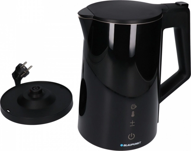 Geniet van perfect gekookt water voor thee en koffie met de BLAUPUNKT-waterkoker van 1,7 l. De dubbele wand zorgt voor betere thermische isolatie en een koele buitenkant, terwijl de gladde roestvrijstalen binnenzijde zonder afdichtingen kalkaanslag vermindert en het onderhoud vereenvoudigt. Het grote, goed leesbare display en de touchbediening geven de waterkoker een moderne uitstraling en extra gebruiksgemak.