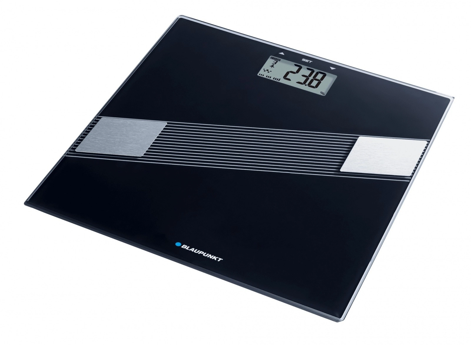 De persoonlijke weegschaal BSM411 van Blaupunkt zorgt dankzij de weefselmeetfunctie voor een eenvoudige en aangename meting van het gebruikersgewicht, evenals van het vet- en watergehalte in het lichaam. Er kunnen tot 12 persoonlijke profielen worden ingesteld, zodat niet alleen jij, maar ook je naasten de actuele beschikbare gegevens over hun lichaam kunnen controleren.