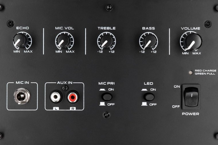 Op het bedieningspaneel vind je aparte bas- en trebleregeling en ook een equalizer met de modi Normal, Rock, Pop, Classic, Jazz en News. Met TWS (True Wireless Stereo) verbind je twee MB06.2’s voor een bredere soundstage en een echt stereo-effect. Karaoke met de meegeleverde bekabelde microfoon zet elk feest in de spotlights, terwijl LED-verlichting een indrukwekkende clubatmosfeer creëert.