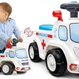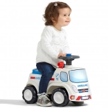 De stijlvolle loopauto in de vorm van een ambulance stimuleert de kinderfantasie en de ontwikkeling van het evenwicht. Dankzij het stuur met claxon leren kinderen hun bewegingen beter te coördineren, terwijl de brede wielen en de stabiele constructie zekerheid bieden bij de eerste ritjes.