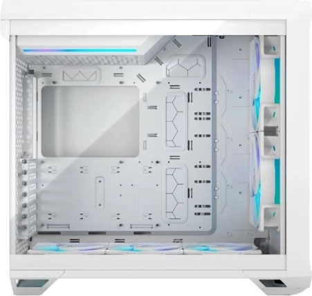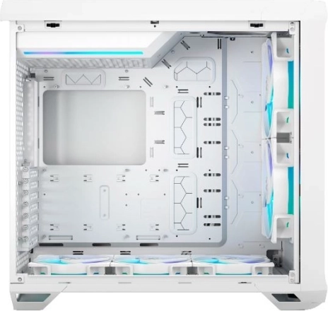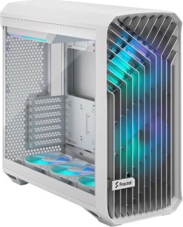 Fractal Torrent is ontworpen om direct uit de doos maximale koelprestaties te leveren. Het open rooster aan de voorzijde en de volledig onbelemmerde interne indeling geven componenten ruimte om te “ademen”, terwijl het duo 180 × 38 mm RGB PWM-ventilatoren vooraan en nog drie 140mm-ventilatoren zorgen voor een enorme luchtstroom met beschaafd geluidsniveau.
