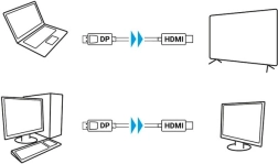 - Pc/laptop met DP → monitor/tv/projector met HDMI