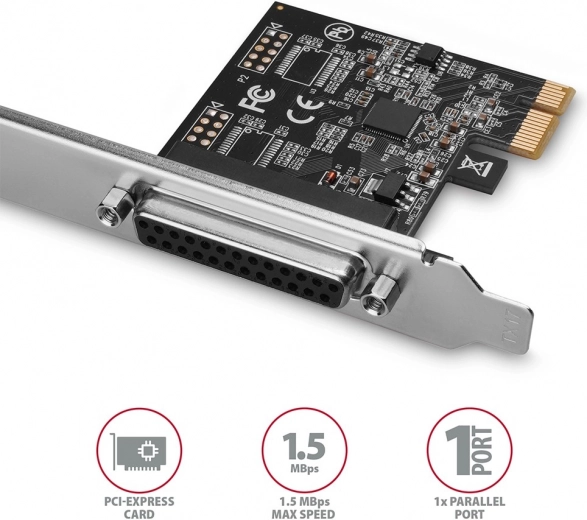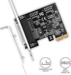 Deze PCI-Express-kaart voegt een betrouwbare parallelle poort toe aan je pc voor het aansluiten van printers, plotters, EPROM-programmers, hardware-dongles en andere industriële randapparatuur. De bewezen ASIX AX99100-chipset zorgt voor probleemloze compatibiliteit, ondersteunt SPP/BYTE/ECP-modi en overdrachtssnelheden tot 1,5 MB/s.
