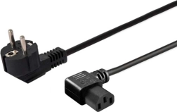 Hoogwaardige en universele voedingskabel met haakse Schuko- en IEC C13-connectoren, ideaal voor het aansluiten van monitors, computers, printers en projectoren.