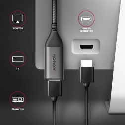 Bescherming en duurzaamheid zijn gewaarborgd door metalen uiteinden met vernikkelde afwerking en vergulde aansluitingen, terwijl de nylon omhulling voor een lange levensduur zorgt. Eenrichtingsconversie van USB-C naar HDMI vereist ondersteuning voor DisplayPort Alternate Mode voor juiste werking. Signaaloverdracht is gewaarborgd zonder behoefte aan externe voeding. Geniet van de eenvoud en effectiviteit van het verbinden van apparaten via USB-C.