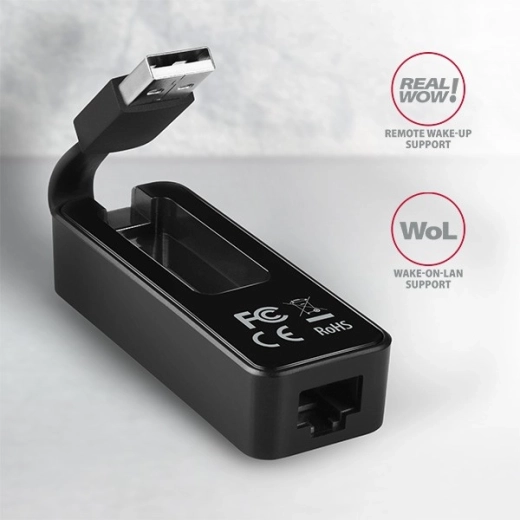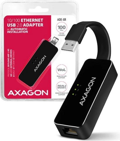 Compacte en krachtige AXAGON ADE-XR netwerkadapter zet eenvoudig een USB 2.0-poort om naar Fast Ethernet 10/100 Mbit. Biedt brede compatibiliteit en veel functies, zoals lagere CPU-belasting, Wake-on-LAN en VLAN-ondersteuning.