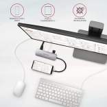 Deze hub biedt drie USB‑poorten met standaard USB‑A‑connectoren. Ondersteunt het gelijktijdig gebruik van meerdere externe schijven. Dankzij de snelle USB 3.2 Gen 1‑interface wordt gegevensoverdracht tot 5 Gb/s ondersteund. De hub biedt ook oplaadfunctie voor telefoons en tablets met een stroom tot 1,5 A / 5 V.