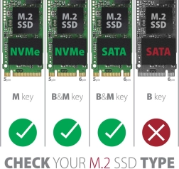 De schroefloze constructie van zwart aluminium met ventilatie zorgt voor optimale koeling en verlengt de levensduur van de schijf. Geschikt voor alle formaten M.2 SSD’s: 2242, 2260 en 2280 mm. Dit product is een uitstekende keuze voor wie een stijlvolle en efficiënte oplossing zoekt voor het opslaan en overdragen van data.