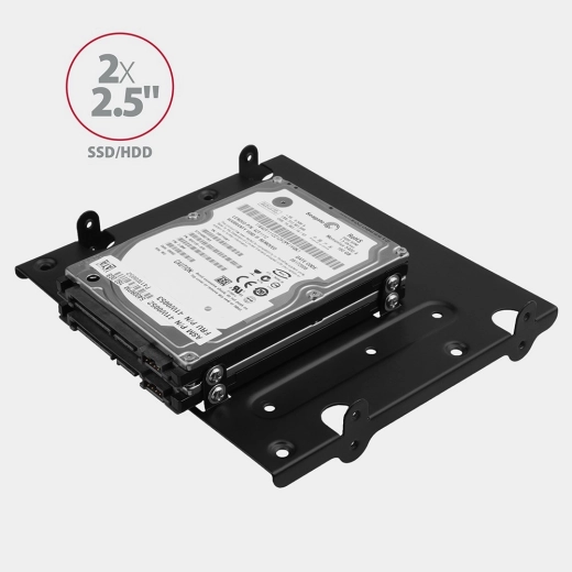 De AXAGON RHD-435 lost het probleem op van het plaatsen van 2.5"- of 3.5"-schijven in verschillende computerkasten. Dankzij het universele ontwerp kunnen in het bovenste deel zowel 7 mm SSD’s als 9,5 mm 2.5" HDD’s worden gebruikt. Het onderste frame is bedoeld voor een standaard 3.5" schijf of twee 2.5" SSD/HDD’s zonder hoogtebeperking.