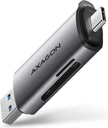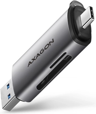 De universele draagbare AXAGON geheugenkaartlezer ondersteunt alle actuele versies van SD- en microSD-kaarten, inclusief SDXC en microSDXC tot een capaciteit van 2 TB. Met twee connectors, USB-C en USB-A, is de lezer eenvoudig aan te sluiten op pc’s, laptops, mobiele apparaten en tablets.