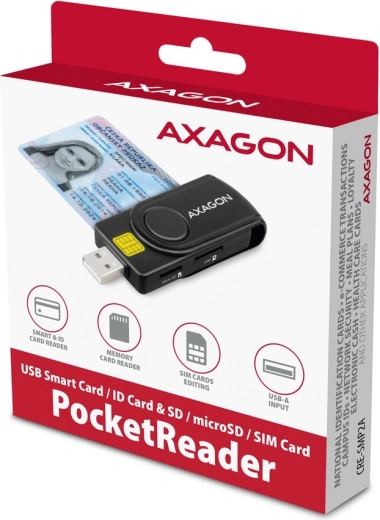 Kleine en universele kaartlezer AXAGON CRE-SMP2A biedt brede compatibiliteit voor elektronische en betaalkaarten. Ondersteunt ook SD, microSD en SIM-geheugenkaarten, wat handig gegevensbeheer op reizen verzekert.