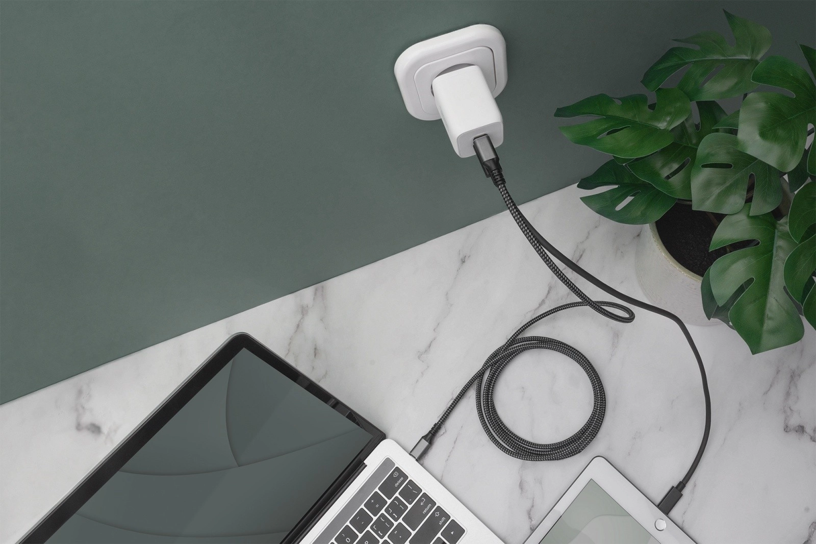 Laad twee apparaten tegelijk op met slimme vermogensverdeling (tot 45 W + 20 W) – ideaal voor telefoon en tablet of laptop.