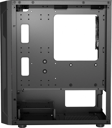 Kleine openingen onder de plek voor de voeding dienen als filter dat voorkomt dat stof en vuil de behuizing binnendringen. Tegelijkertijd zorgen ze voor luchttoevoer voor de PSU.