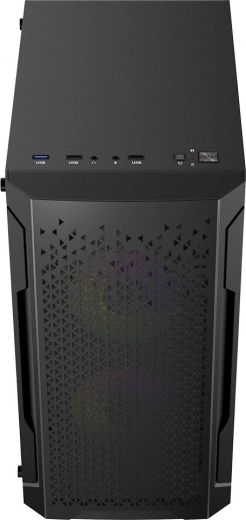 Gemakkelijke toegang tot het bovenpaneel met twee USB 2.0-poorten en één USB 3.0-poort. Op het bovenpaneel bevinden zich twee USB 2.0 en één USB 3.0-poort die eenvoudig te bereiken zijn. Verder HD-audiopoorten voor hoofdtelefoon en microfoon, een aan/uit-knop en een resetknop (voor bediening van de ARGB-verlichting).