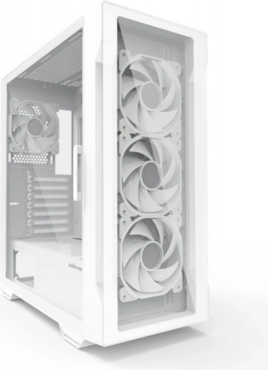 De Zalman I3 Neo TG Mid Tower behuizing in het wit is uitgerust met vier vooraf geïnstalleerde RGB-ventilatoren die niet alleen zorgen voor een efficiënte luchtstroom, maar ook een esthetische uitstraling met aanpasbare verlichting. Het frontpaneel met gaas verbetert de ventilatie, wat essentieel is om optimale temperaturen te behouden. Het glazen paneel biedt een prachtig zicht op de interne onderdelen van de computer en is eenvoudig te openen voor snelle toegang.