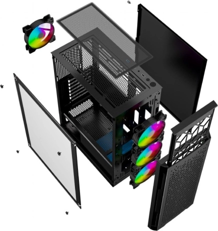 De stijlvolle gamingbehuizing Fornax 400X combineert uitstekende airflow, gehard glas en ARGB-verlichting voor een perfecte look en koeling. Hij biedt een voorste stoffilter, een magnetisch bovenfilter, moderne ondermontage van de voeding en snelle USB 3.1 SuperSpeed-poorten – de ideale basis voor een krachtige en stille pc-build.