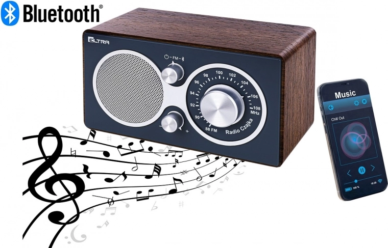 Geniet van je favoriete zenders en muziek vanaf je telefoon met deze elegante radio in houtafwerking. De combinatie van een bruine houten kast en een grijze voorzijde past perfect in elk interieur, van retro tot modern.