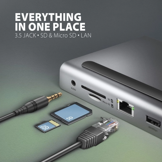 De hub ondersteunt ook de Power Delivery 3.0 technologie, waarmee u uw laptop kunt opladen met een vermogen tot 100W. De Gigabit Ethernet interface biedt een stabiele netwerkverbinding, en de SD/microSD-kaartlezer kan worden gebruikt met een capaciteit tot 2TB en maakt gelijktijdig gebruik van beide slots mogelijk.