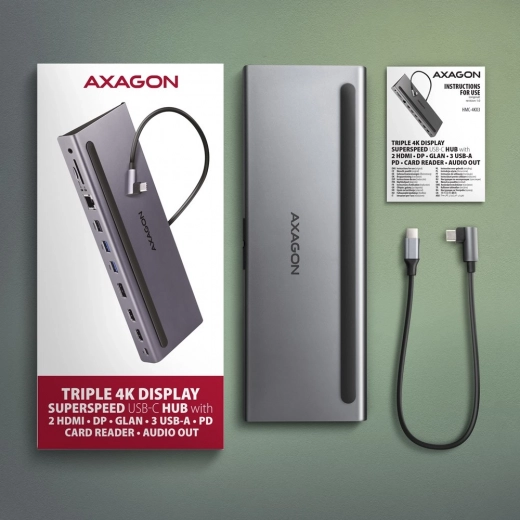 De krachtige Axagon HMC-4KX3 hub staat gelijktijdige aansluiting van drie monitoren toe, elk met een resolutie tot 4K/30Hz. Dankzij de ondersteuning van HDR ervaart u een breder scala aan kleuren en contrasten. De USB 3.2 Gen 1 interface zorgt voor snelle gegevensoverdracht tot 5Gb/s, wat efficiënt werken met bestanden garandeert.