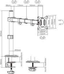Monitorhouder voor bureau maakt het mogelijk om de positie van de monitor aan te passen aan uw behoeften. Het is gemaakt van duurzaam metaal en ondersteunt monitoren met een grootte van 17 tot 32 inch en een gewicht tot 9 kg.