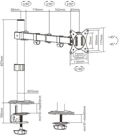 - Robuuste constructie: Een sterk bureauklemmechanisme zorgt voor een veilige bevestiging aan het bureau.