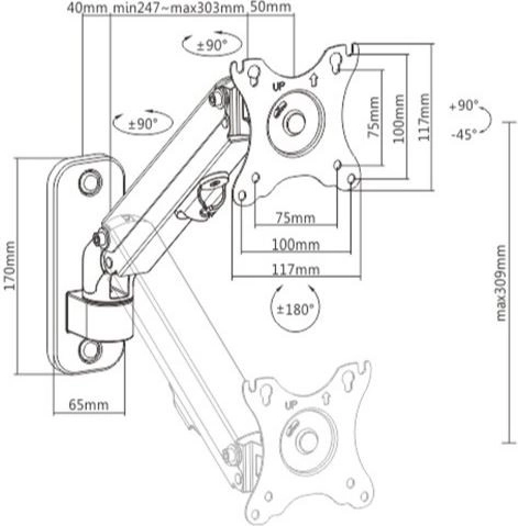 Verstelbare muurbeugel ideaal voor monitoren tot 27 inch en een gewicht van maximaal 7 kg. Zorgt voor ergonomische afstelling en een georganiseerde werkplek.