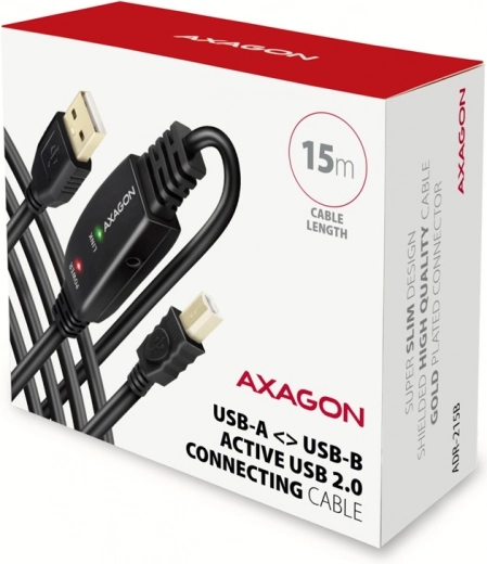 Actieve USB AXAGON ADR-215B kabel van 15 m maakt het mogelijk om apparaten zoals printers, scanners of plotters op grotere afstanden met de computer te verbinden. Dankzij de ingebouwde signaalversterker is er stabiele communicatie, zelfs over grotere afstanden. De kabel kan verder verlengd worden met behulp van een verlengsnoer. Eigenschappen: