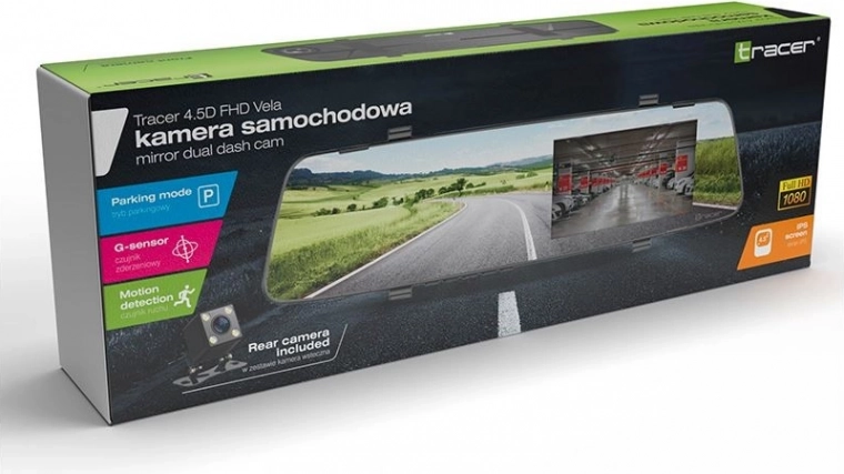 TRACER 4.5D FHD Vela is een moderne spiegel-dashcam die er in elke auto elegant uitziet en elke kilometer van uw rit betrouwbaar beveiligt. Dankzij de resolutie van 1920×1080 (Full HD) bij 30 fps maakt hij gedetailleerde, scherpe en natuurgetrouwe opnames tijdens het rijden. De groothoeklens met een kijkhoek van 150° dekt niet alleen het gebied vóór het voertuig, maar ook de naastliggende rijstroken en de berm.