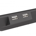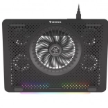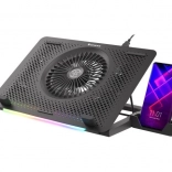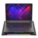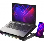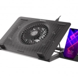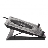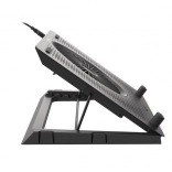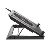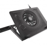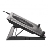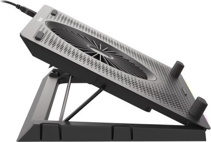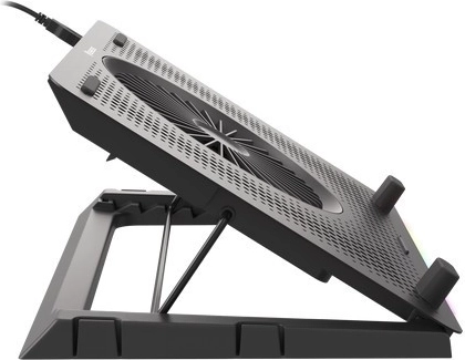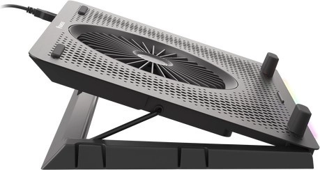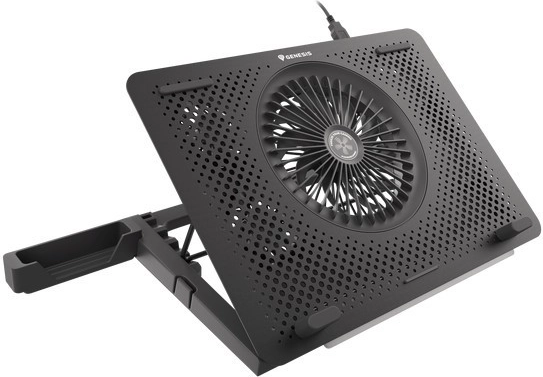Het koelsysteem bestaat uit 1 grote ventilator voor aanvoer van koele lucht en 4 kleinere ventilatoren voor efficiënte warmteafvoer. Dankzij de twee snelheidsniveaus pas je de prestaties eenvoudig aan je huidige werk of game aan. 5 niveaus kanteling verbeteren ergonomie en comfort, terwijl rubberen stoppers en pootjes de laptop veilig op zijn plaats houden.