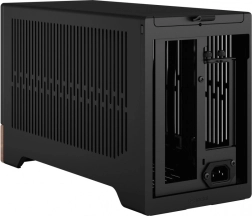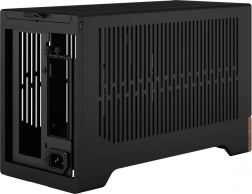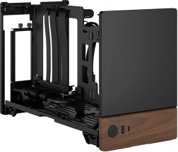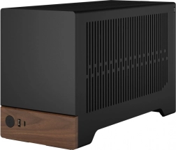 Deze compacte computerbehuizing is ontworpen om indruk te maken met zijn minimalistisch ontwerp. De combinatie van een metalen body en een houten basis geeft het product een moderne en high-end uitstraling die in elke omgeving past.