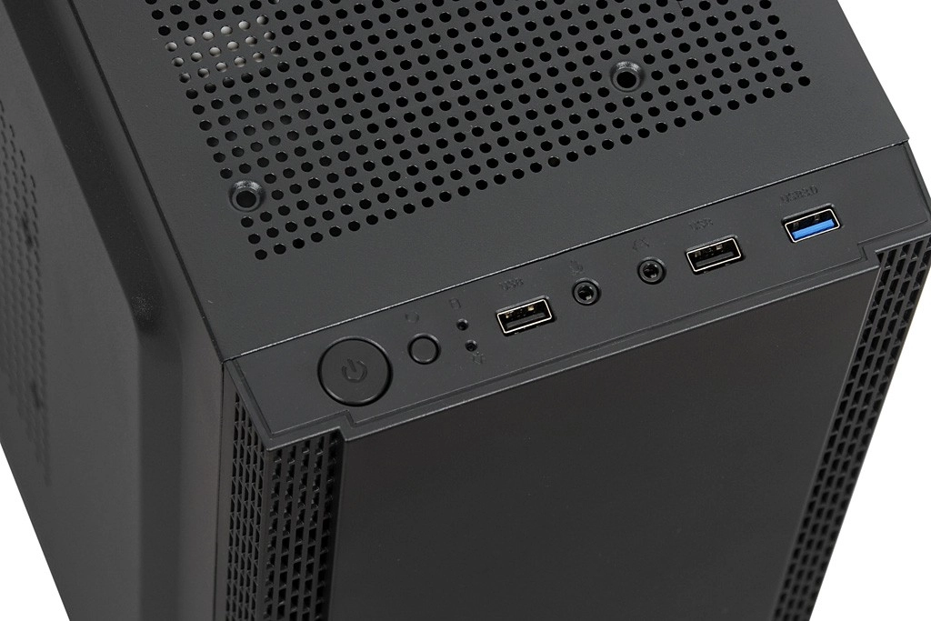 De behuizing is ontworpen met het oog op een nette montage – kabelmanagement maakt het geleiden van kabels eenvoudiger en verbetert de airflow. Drie USB‑poorten op het voorpaneel bieden snelle aansluiting van randapparatuur en datadragers.