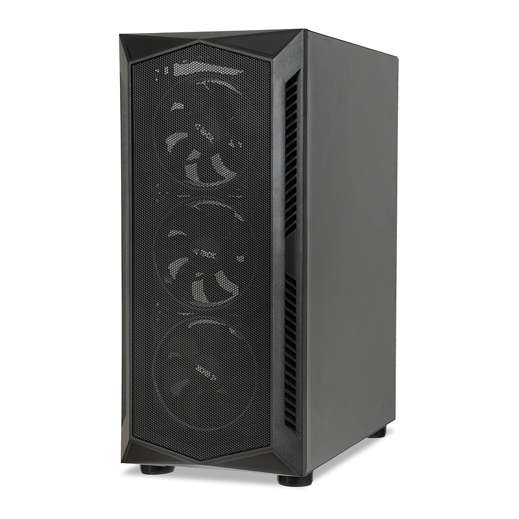 - Meshfront en 4× 120 mm ventilator (3× RGB voor + 1× achter) voor uitstekende koeling