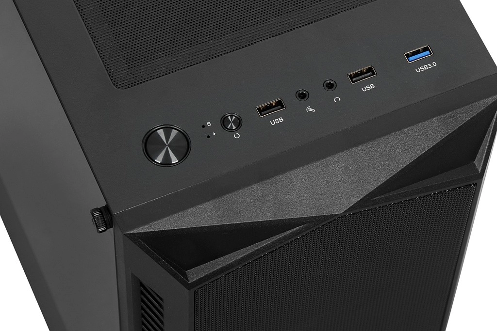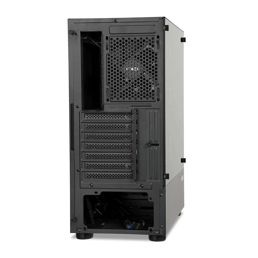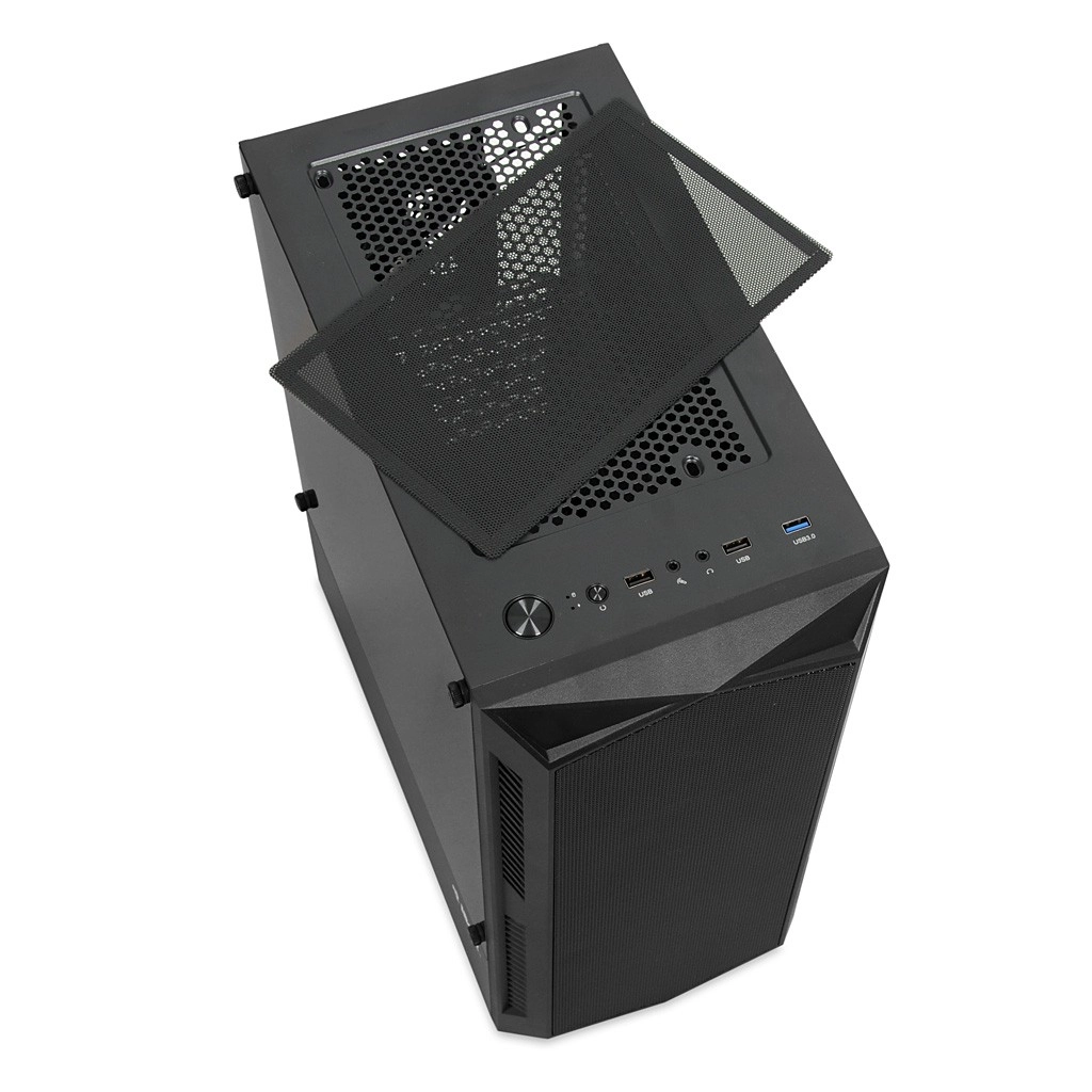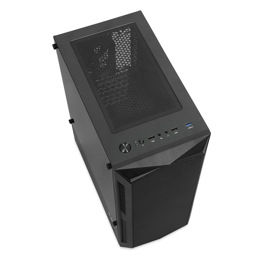 Het zijpaneel van gehard glas accentueert je build en het frontmeshpaneel verbetert de luchtstroom. Zo combineert de behuizing aantrekkelijk design met praktische koeling.