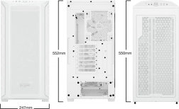 De behuizing biedt volop ruimte voor grote componenten zoals radiatoren tot 420 mm, E-ATX-moederborden en grote grafische kaarten. Het royale ontwerp zorgt voor professionele kabelmanagement, waardoor het interieur georganiseerd blijft.
